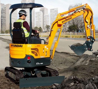 Полноповоротный гусеничный экскаватор с объемом ковша 0,04 куб.м., резиновой гусеницей 230 мм, бульдозерным отвалом, без кабины (навес), двойной гидролинией под навесное оборудование.